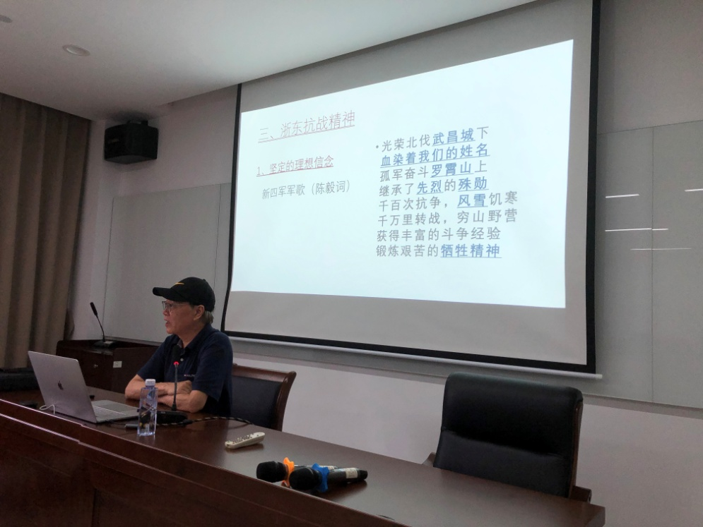 宋会长曾任梁弄镇党委书记,担任市新四军历史研究会会长也已十多年了,对浙东抗战历史了解深入,与浙东抗战领导人的后代交往也甚密,与老区人民感情深厚。讲座中,宋会长讲述日本侵略者侵华过程,饱含深情地回顾了浙东抗战的艰苦岁月,核心是表述浙东人民的抗战精神。