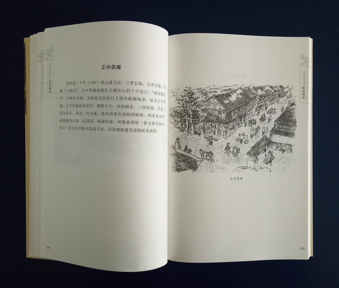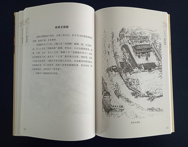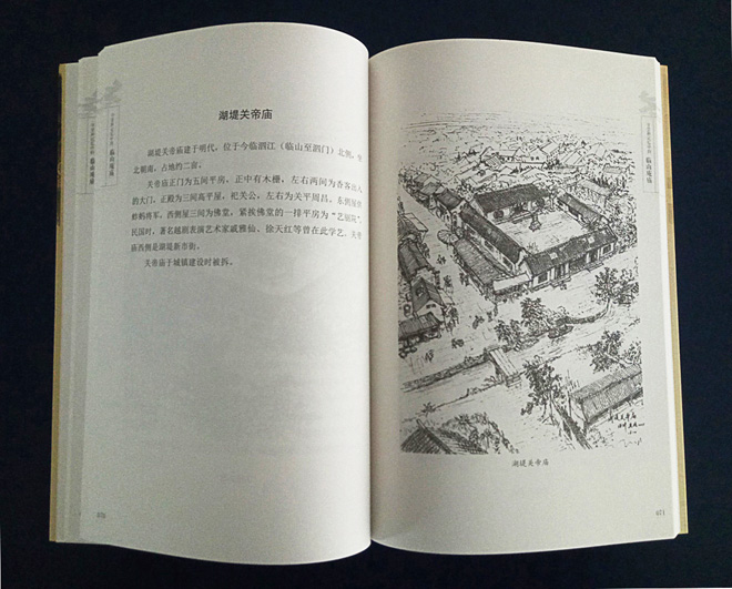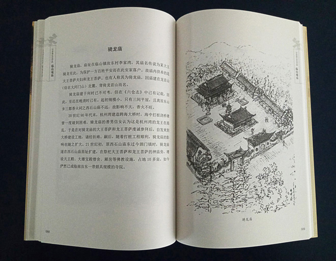 浙江省美术家协会会员、本公司总经理张钟,2012年受邀承担了其中“临山庵庙”插图绘制任务。依靠各方支持,他在三年多的业余时间里,通过采风、考证、写生、创作、修改、再创作、再修改的方式,以不同的视角、深度推进景深的描绘方法,将临山城内“十庵九庙”,城外“十庙九庵“共计三十八幅插图创作完成。
