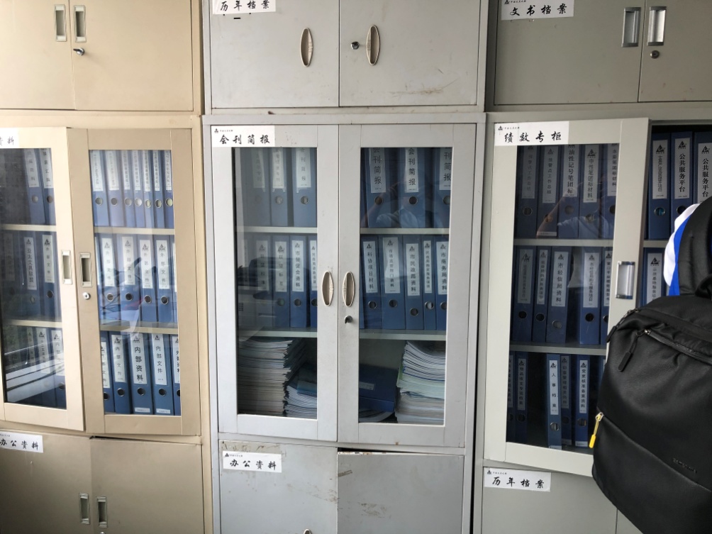 在档案室里,占满橱窗的各类记录,以整齐规范的装钉,妥妥的存放在透明的文件橱里。汪副会长说:可以让大家翻阅,经得起各位的评判。看着这些特别有序的记录文档,我们双眼为之一亮。