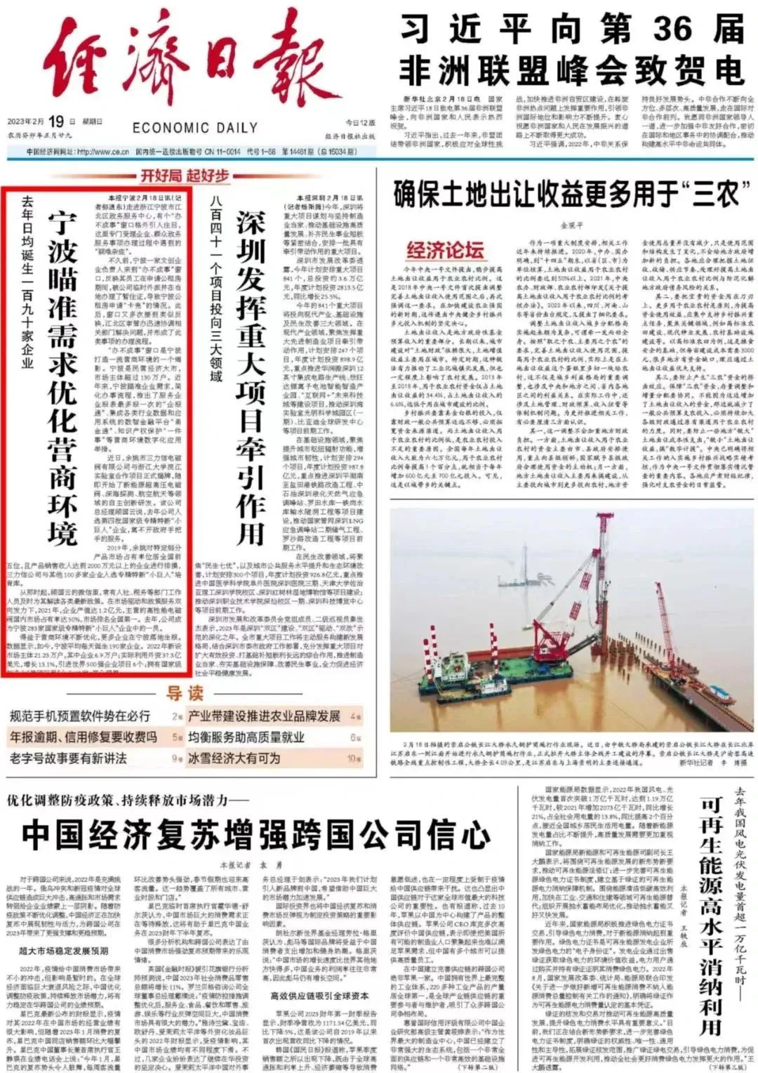 《经济日报》2月19日第1版